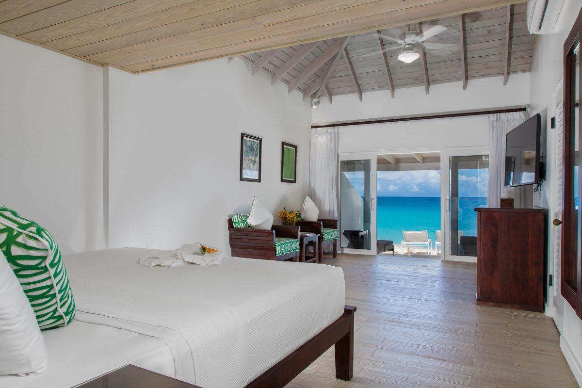 | Superior Deluxe Beachfront Rooms | 1 King | 2 Adults | 465 | Our Superior Deluxe Beachfront Rooms boast the signature charms of the Caribbean. Quietly elegant and thus emphasizing the breathtaking views these rooms are centrally located within the resort so you will never have to travel far to have your every wish catered to. These newly refurbished and well-appointed and spacious rooms allow you to hear the soothing sounds of the waves on your doorstep while reclining in your cocoon of luxury. These single-story accommodations boast vaulted ceilings and extra wide sliding glass doors. |