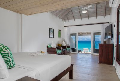 The spacious Premium Beachfront Suites exude authentic Caribbean style and charm. These elegant rooms offer guests additional living space with breathtaking views from your private balcony or patio. Each Premium Beachfront Suite offers guests a luxurious bathroom. Each suite boasts a decadent double shower as well as being the only rooms to offer a bath. Whichever your preference, you will soon find the worries of your everyday lives being washed away.