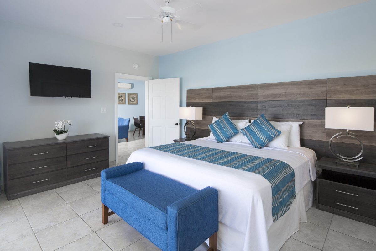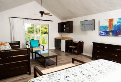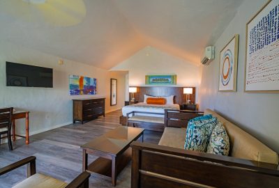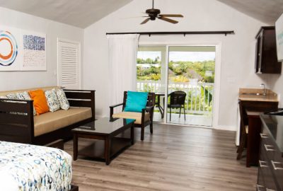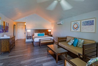 Wake up to breathtaking oceanfront views in our Waterfront Suites, featuring one king bed or two queen beds and a private balcony to enjoy the tropical surroundings.
